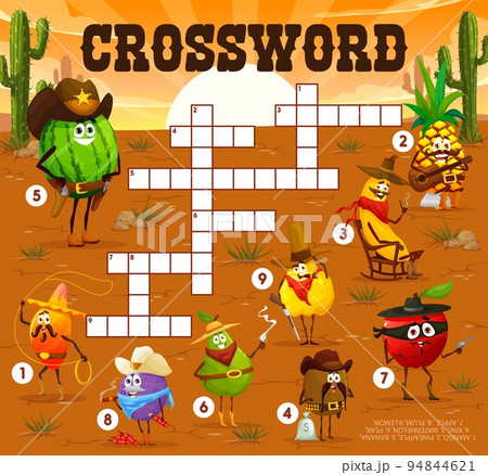 Crossword quiz game of cartoon fruit cowboy のイラスト素材 94844621 PIXTA