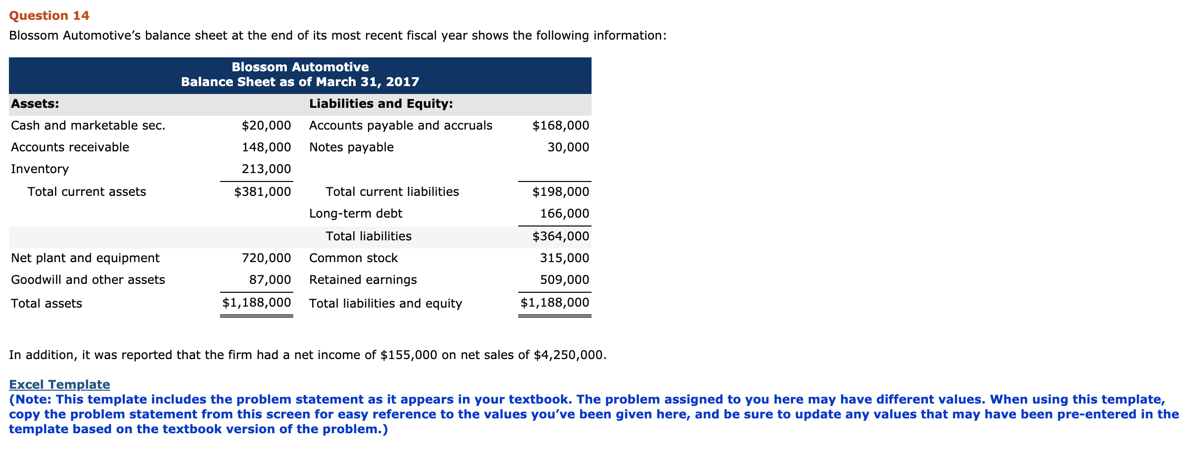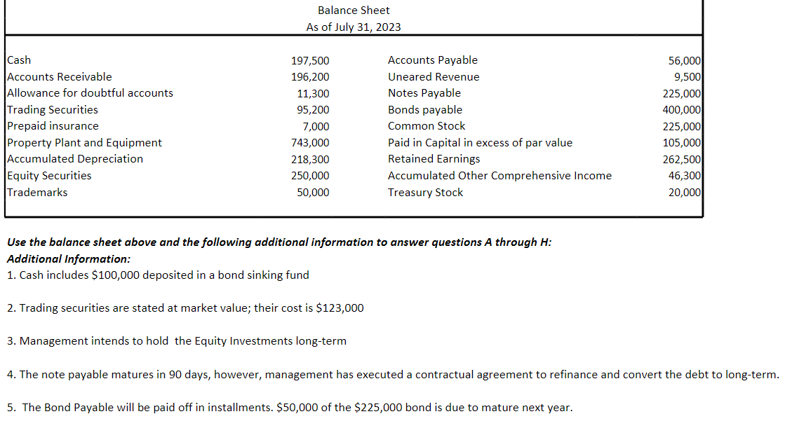 Solved Use the balance sheet above and the following Chegg com