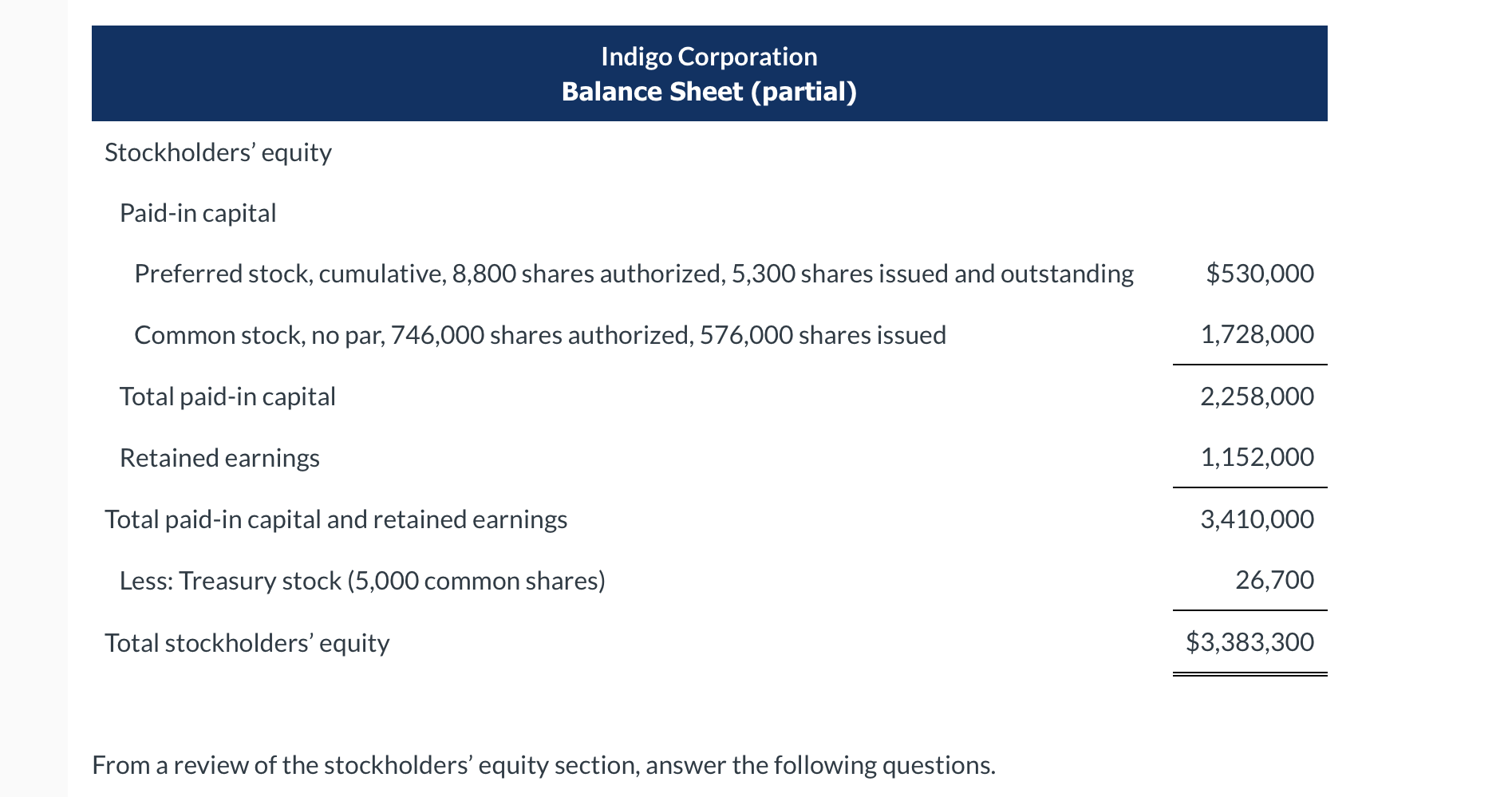 Solved Indigo Corporation Balance Sheet (partial) Chegg com