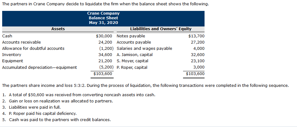 Solved The partners in Crane Company decide to liquidate the Chegg com