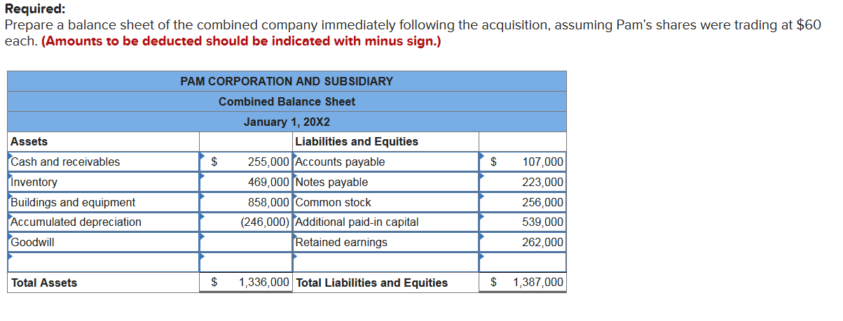 Solved The following balance sheets were prepared for Pam Chegg com