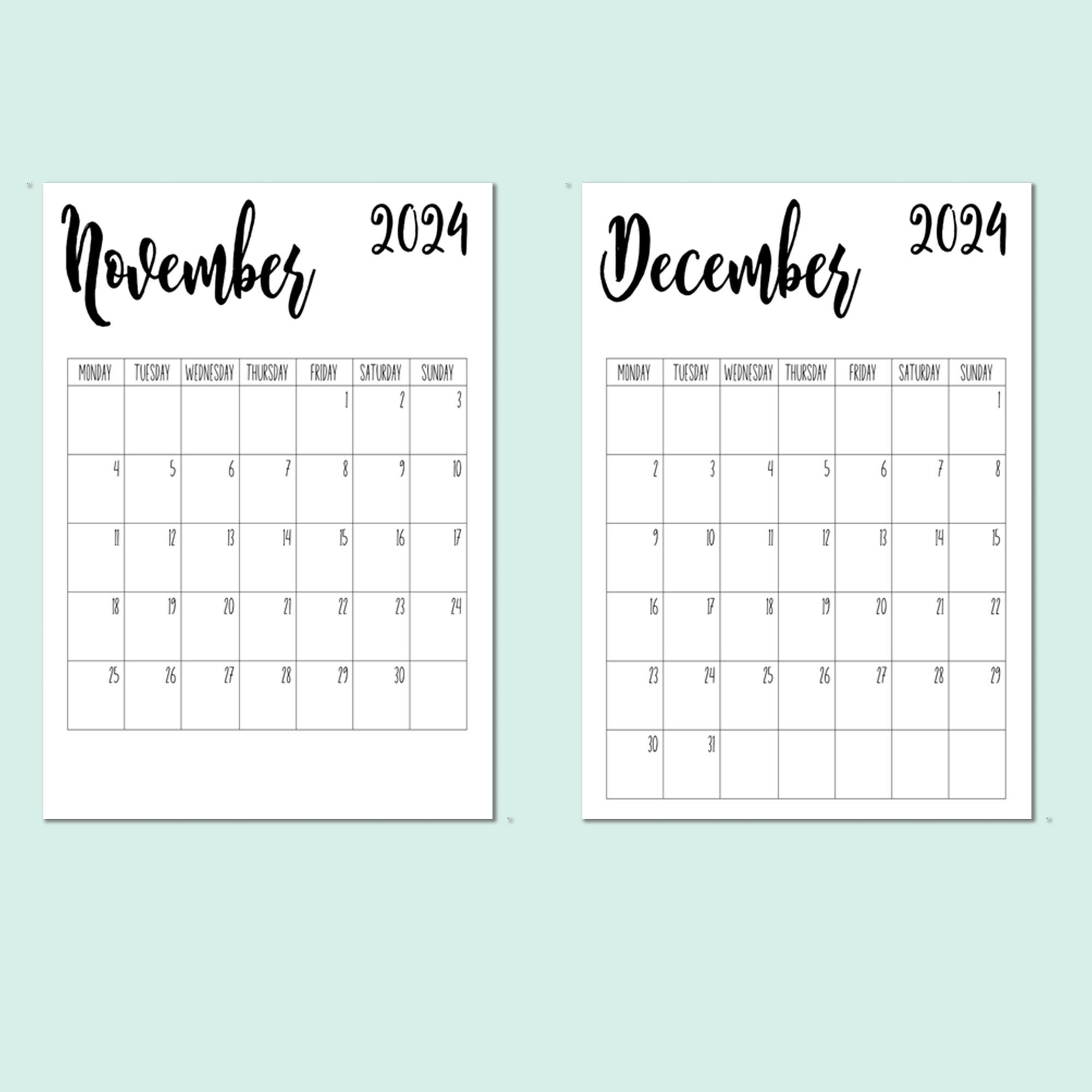 2024 Printable Calendar Blank Design Monthly Calendar Monday Etsy