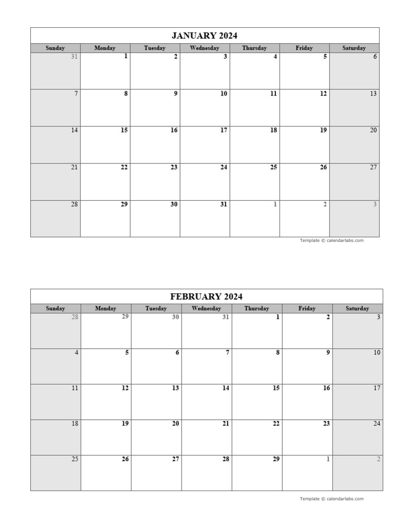 2024 Blank Calendar Templates Free Printable