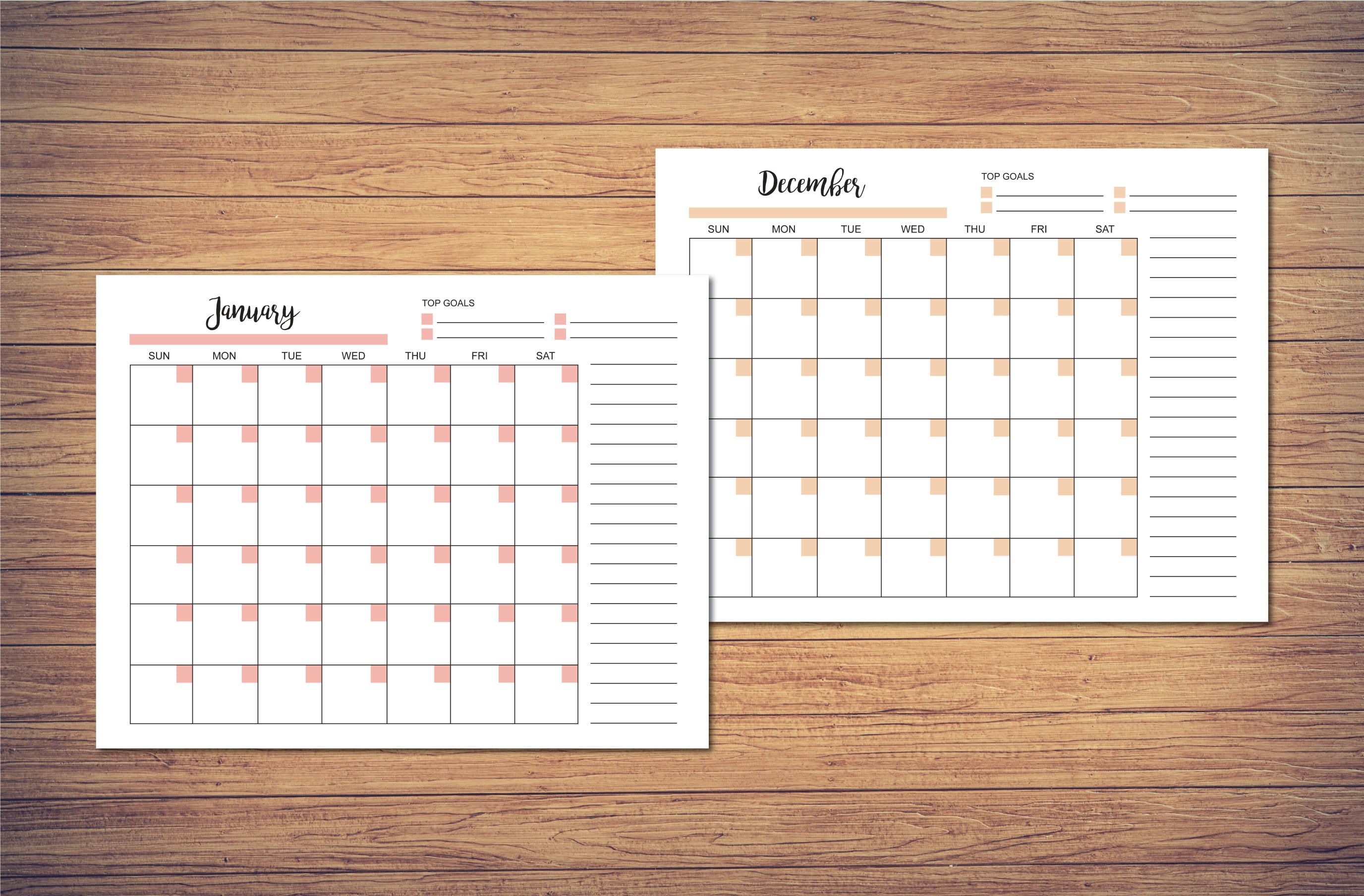 Blank Monthly Calendar Page Template INSTANT DOWNLOAD Etsy