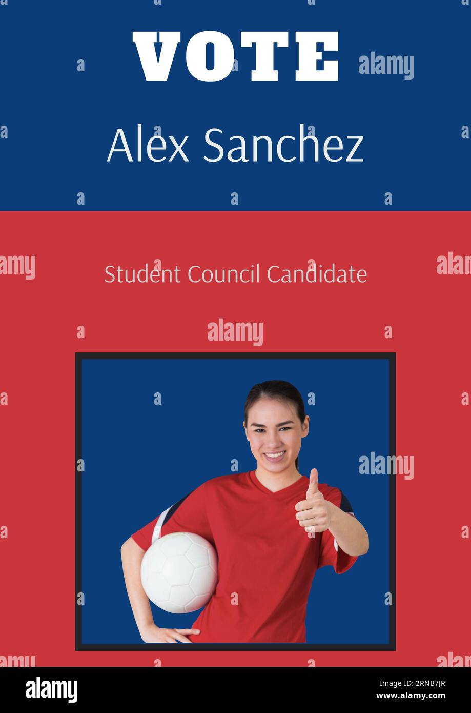 Portrait of biracial woman with ball showing thumbs up vote alex