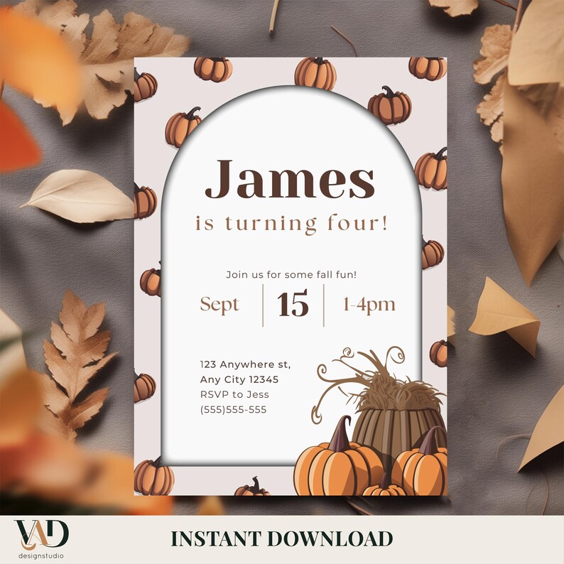 Editable Fall Invitation Template Autumn Birthday Instant Download