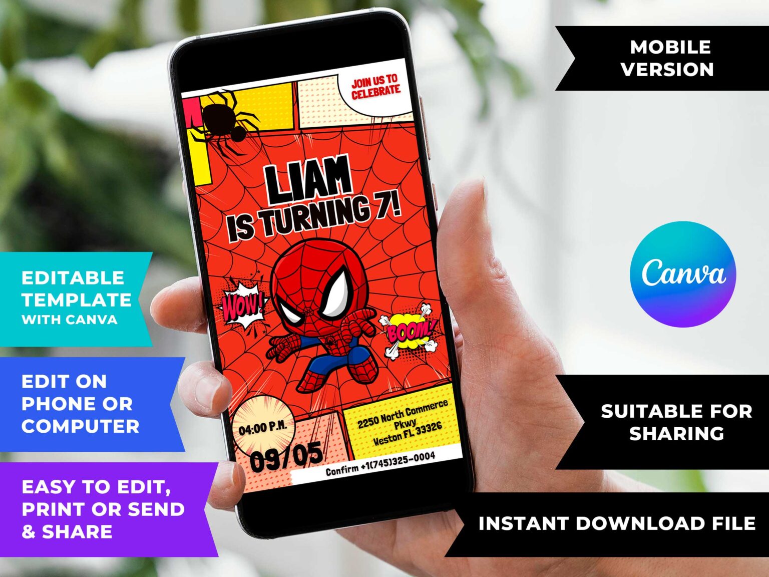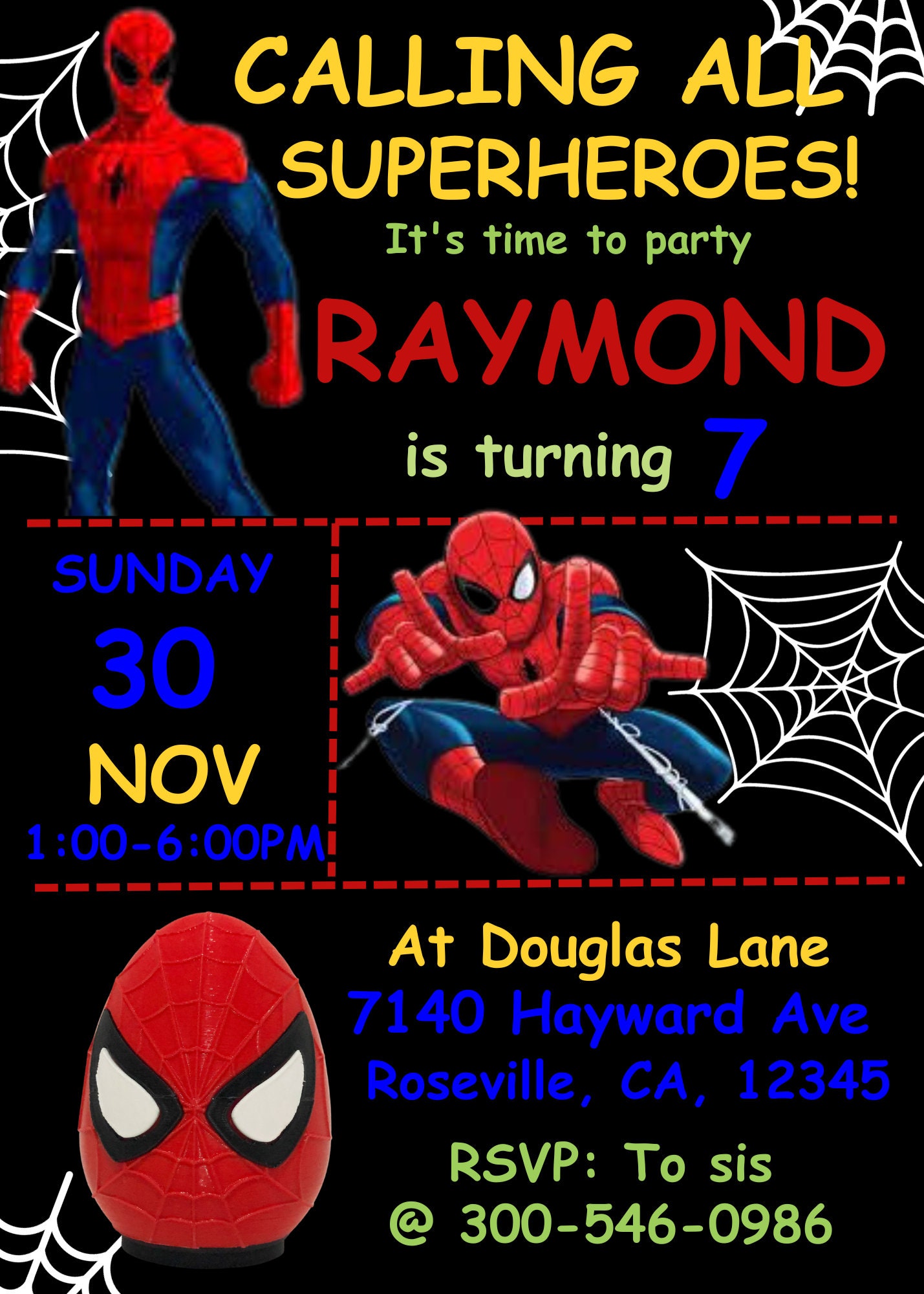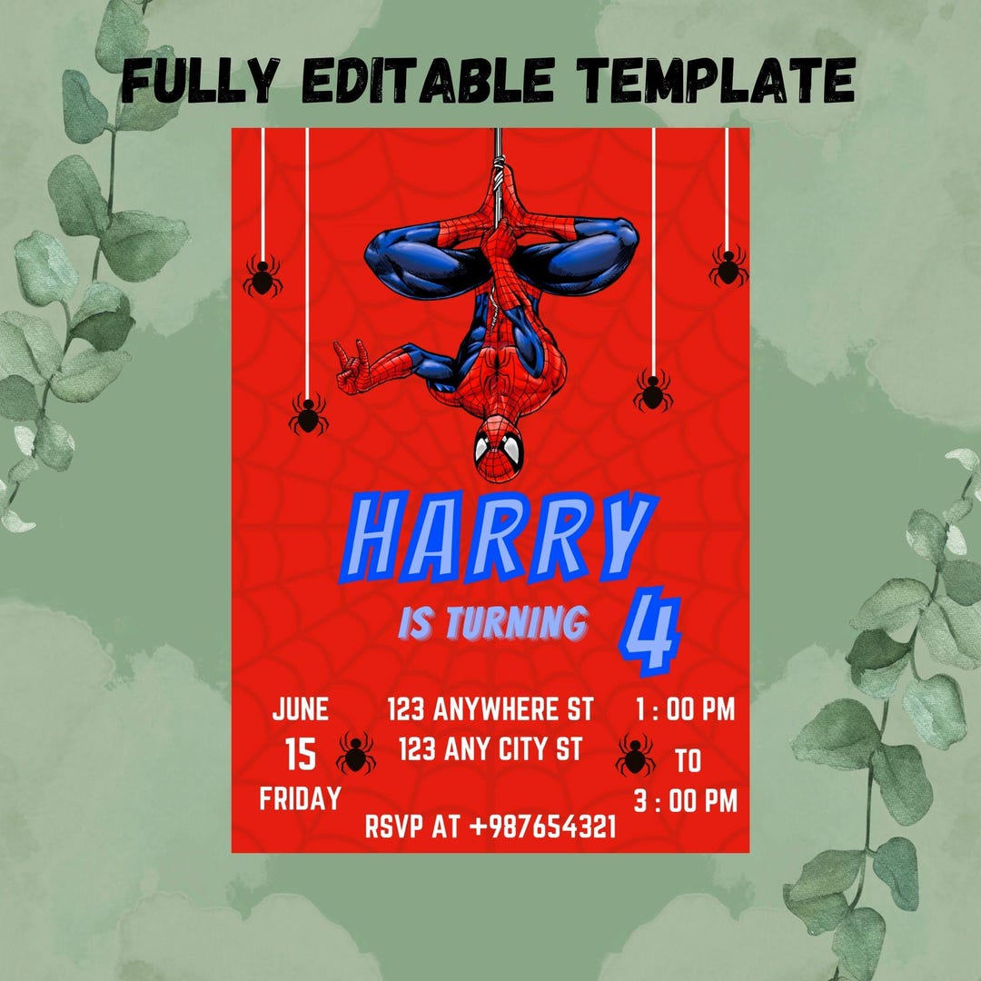 Spiderman Invitation Template Editable Birthday Party Etsy
