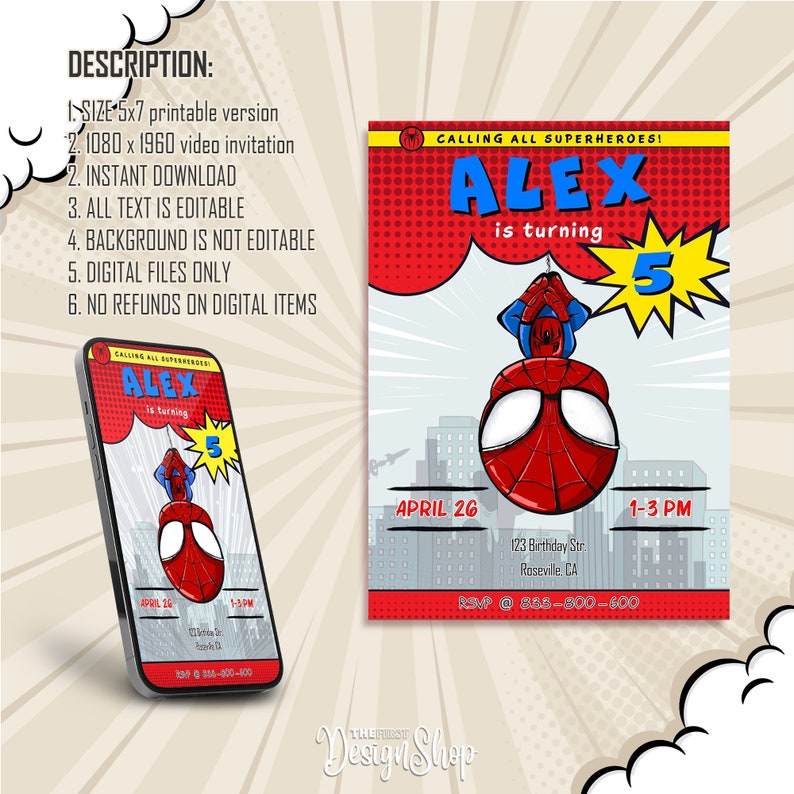 Editable Spiderman Birthday Invitation Template / Editable Kids