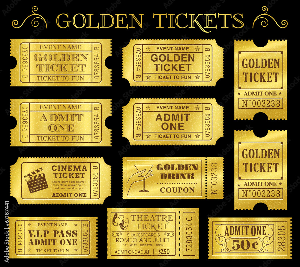 Golden Vector Ticket Templates Stock Vector Adobe Stock