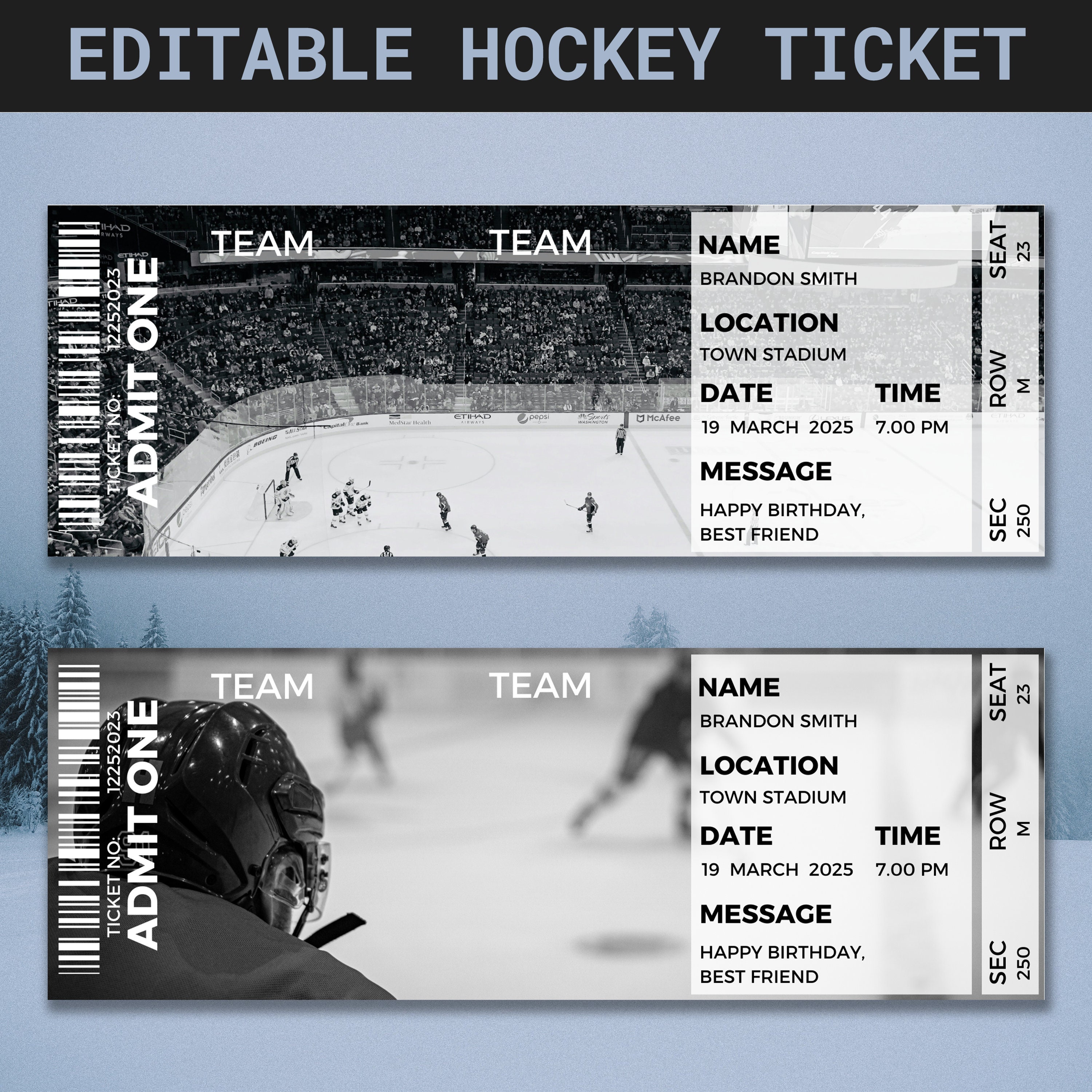 Editable Hockey Game Ticket Surprise Hockey Game Voucher Printable