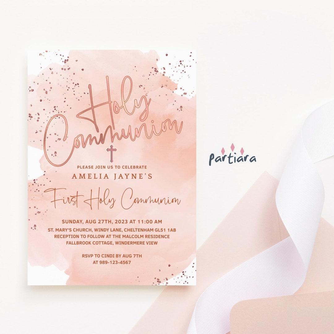 Editable Holy Communion Invitation First Communion Celebration Invite