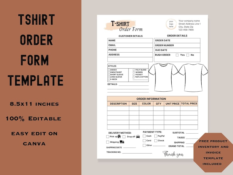T shirt Order Form Template: Editable Business Invoice Etsy