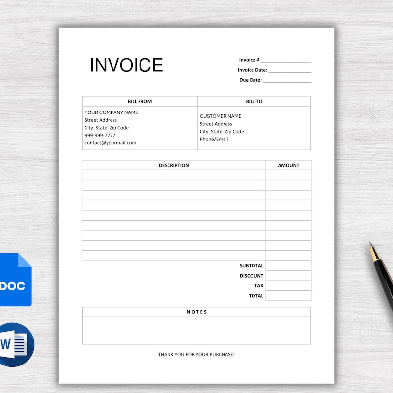 Printable Blank Invoices Template Business PSD Excel Word PDF