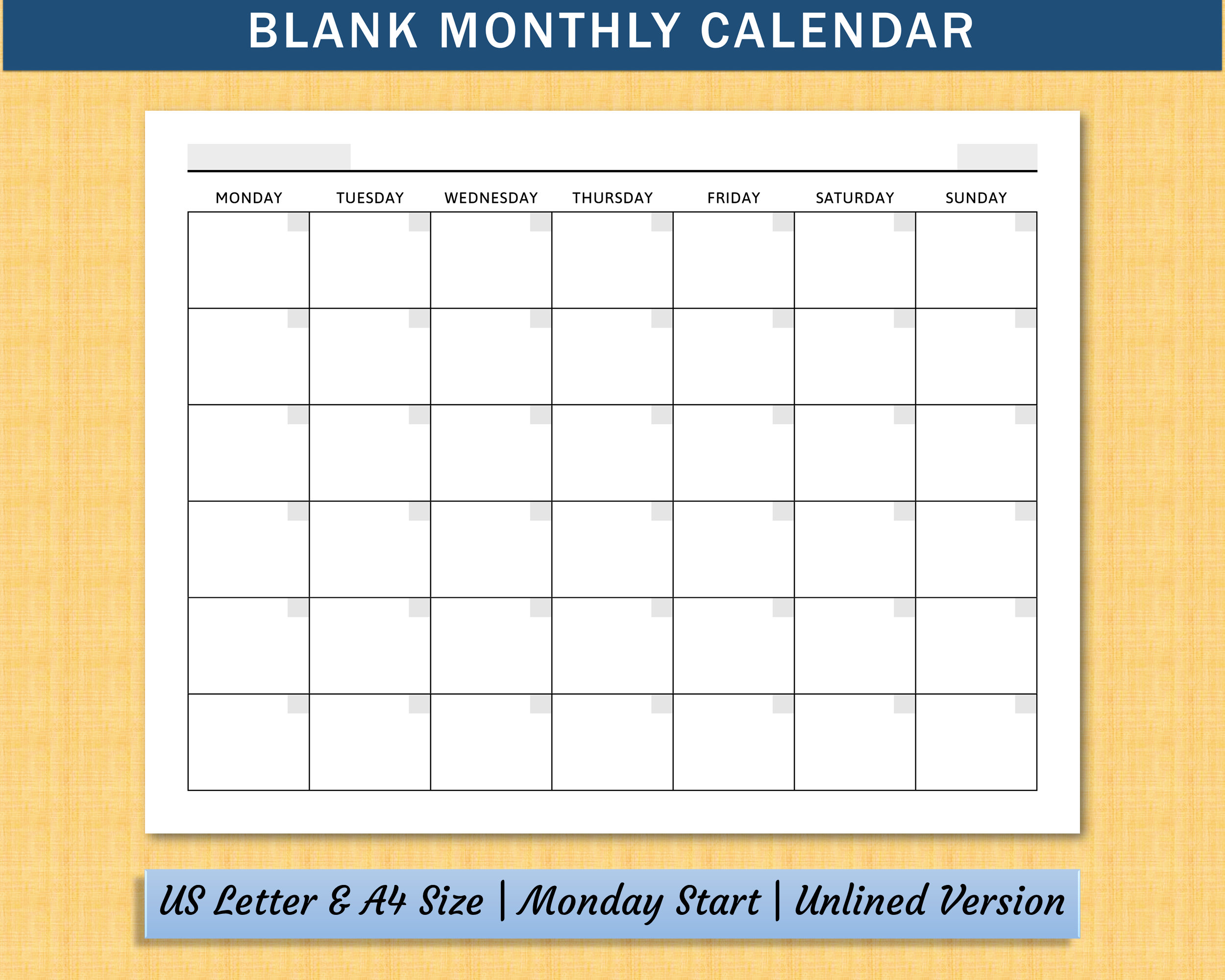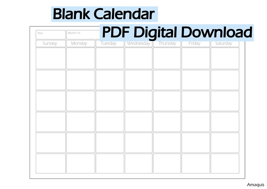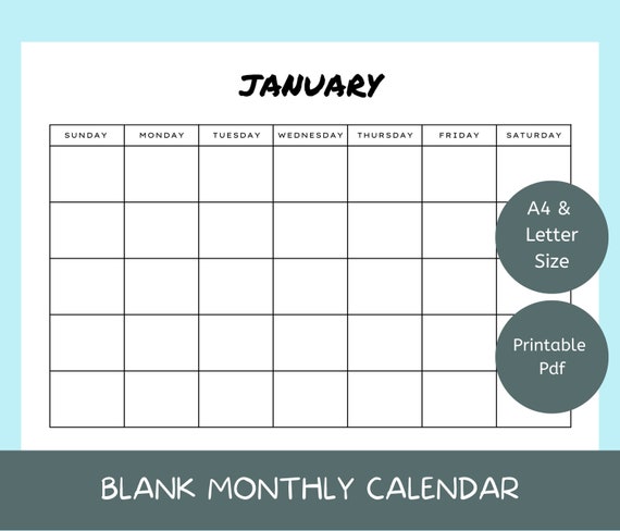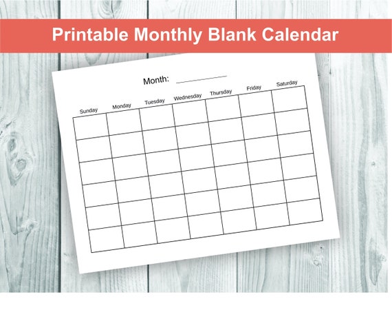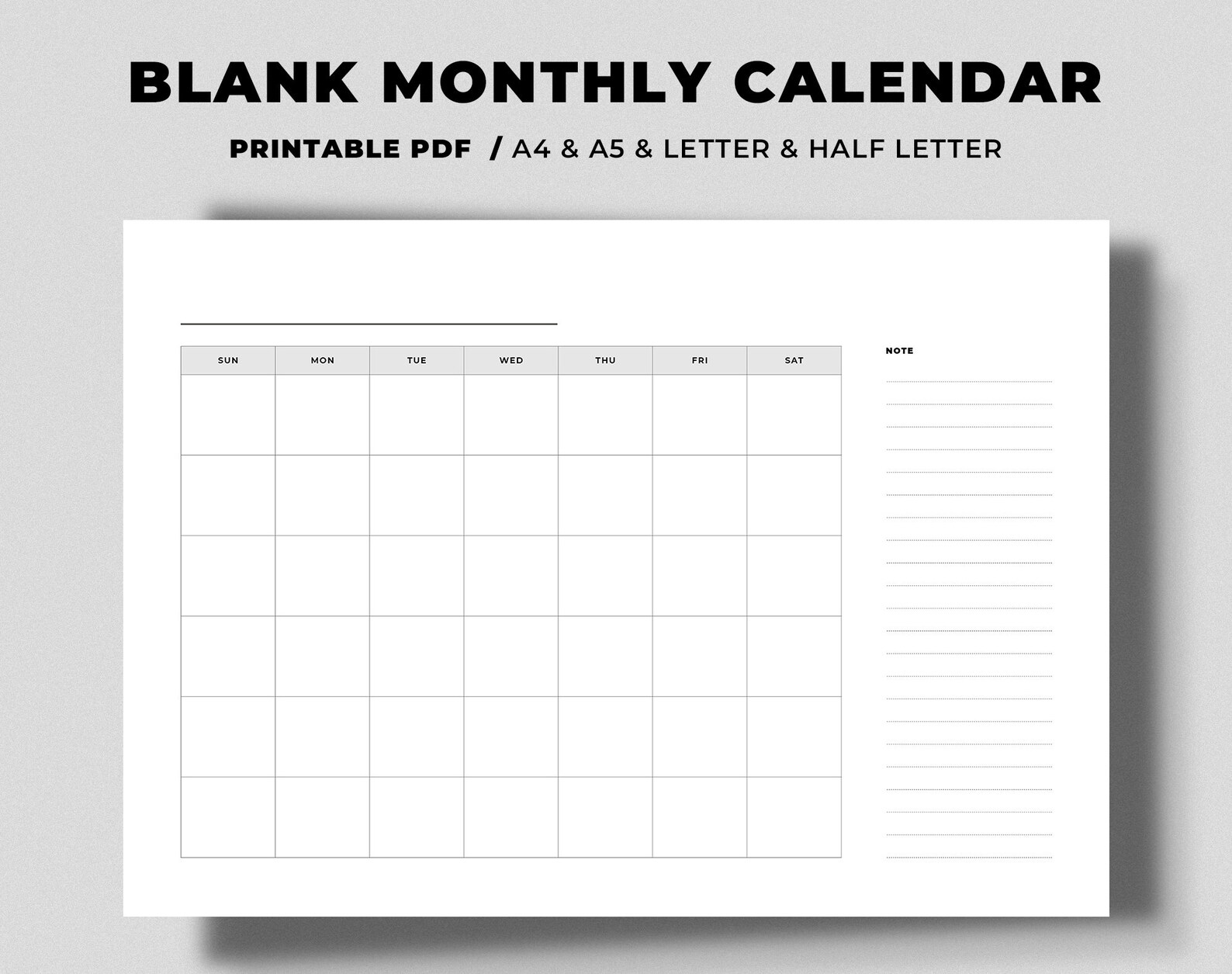 Blank Monthly Calendar Undated Monthly Calendar Instant Etsy