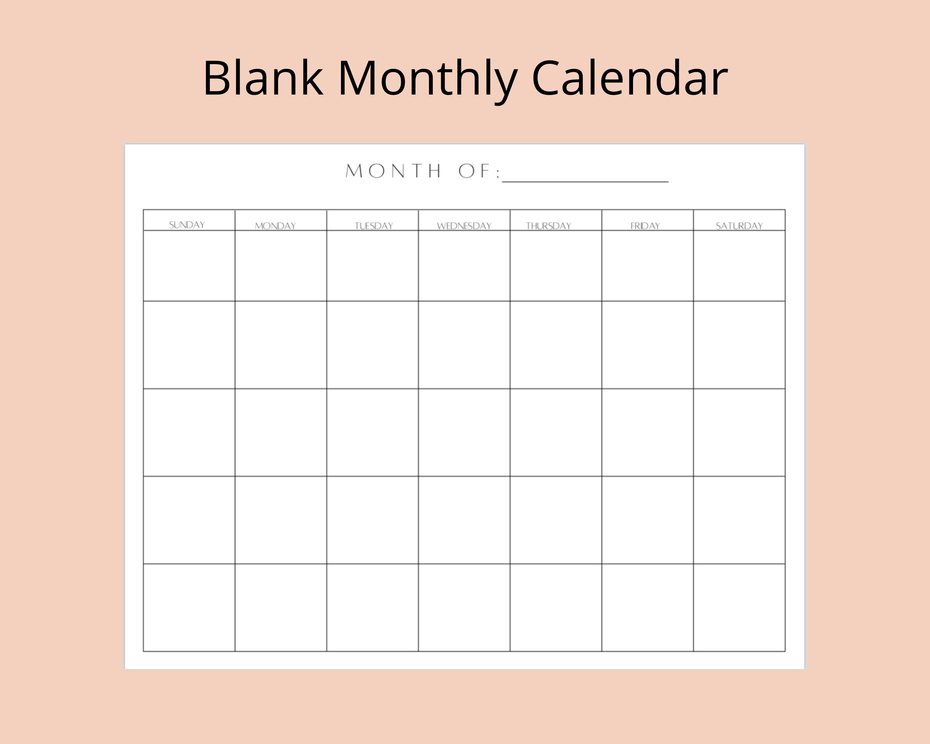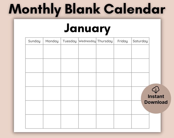 Blank Monthly Calendar Minimalist/ Basic Design Digital PDF