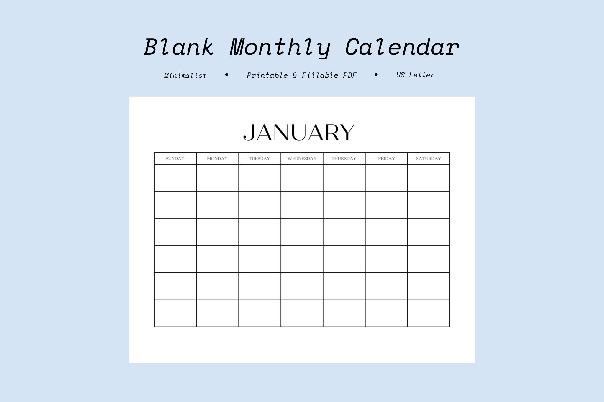 Blank Calendar Monthly Calendar Minimalist Printable Calendar