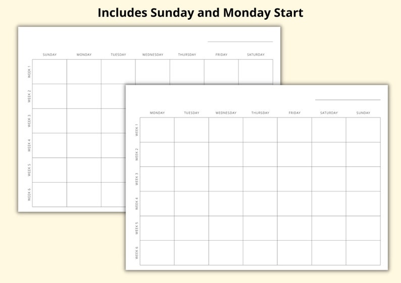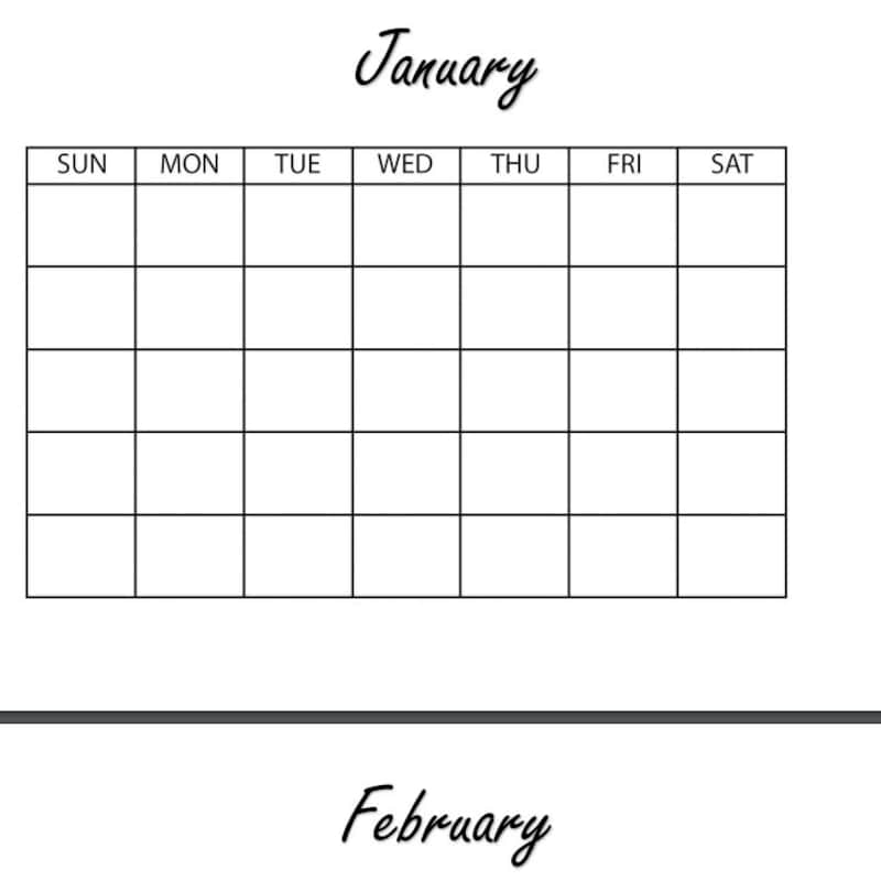 2 Blank Monthly Calendar Printable Landscape Etsy