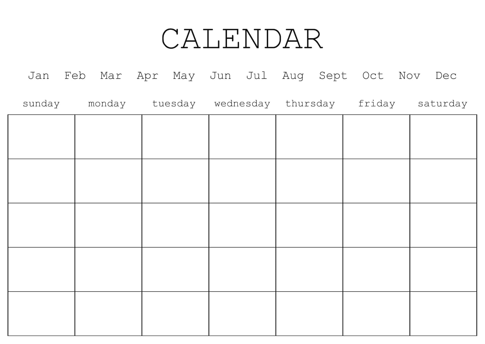 Blank Monthly Calendar Printable Horizontal Calendar Minimalist
