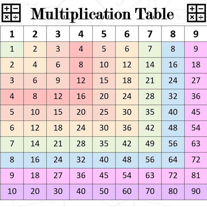 Rainbow Pastel Multiplication Chart Math Poster PDF