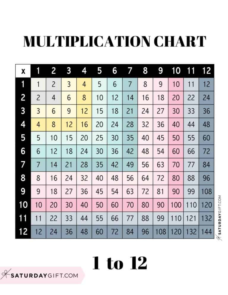 Multiplication Chart Printable Times Tables (1 12) Cute Free