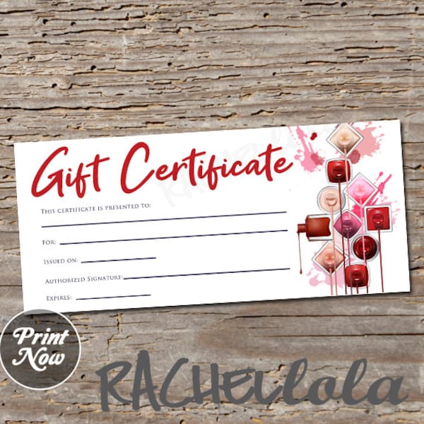 Printable Nail Salon Gift Certificate Fillable Template Manicure