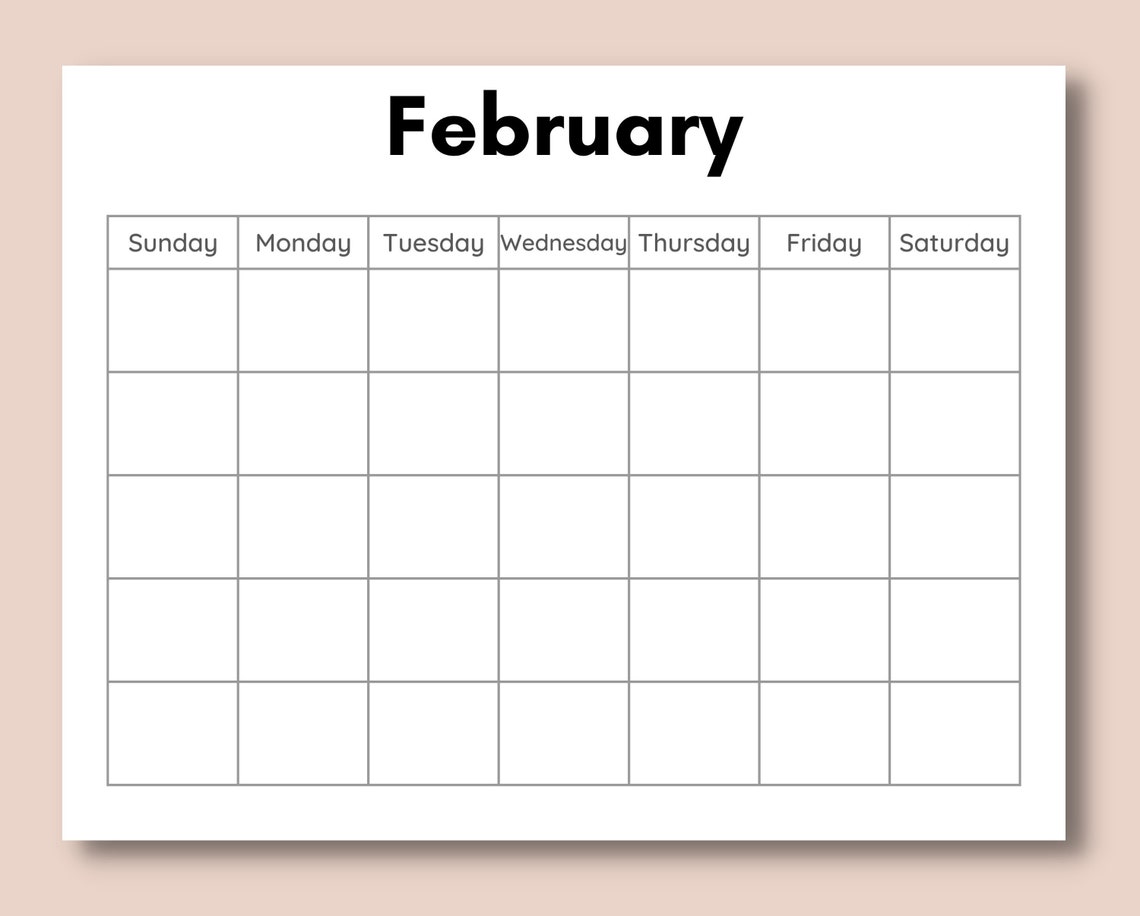 Blank Monthly Calendar Printable Digital Download PDF Etsy