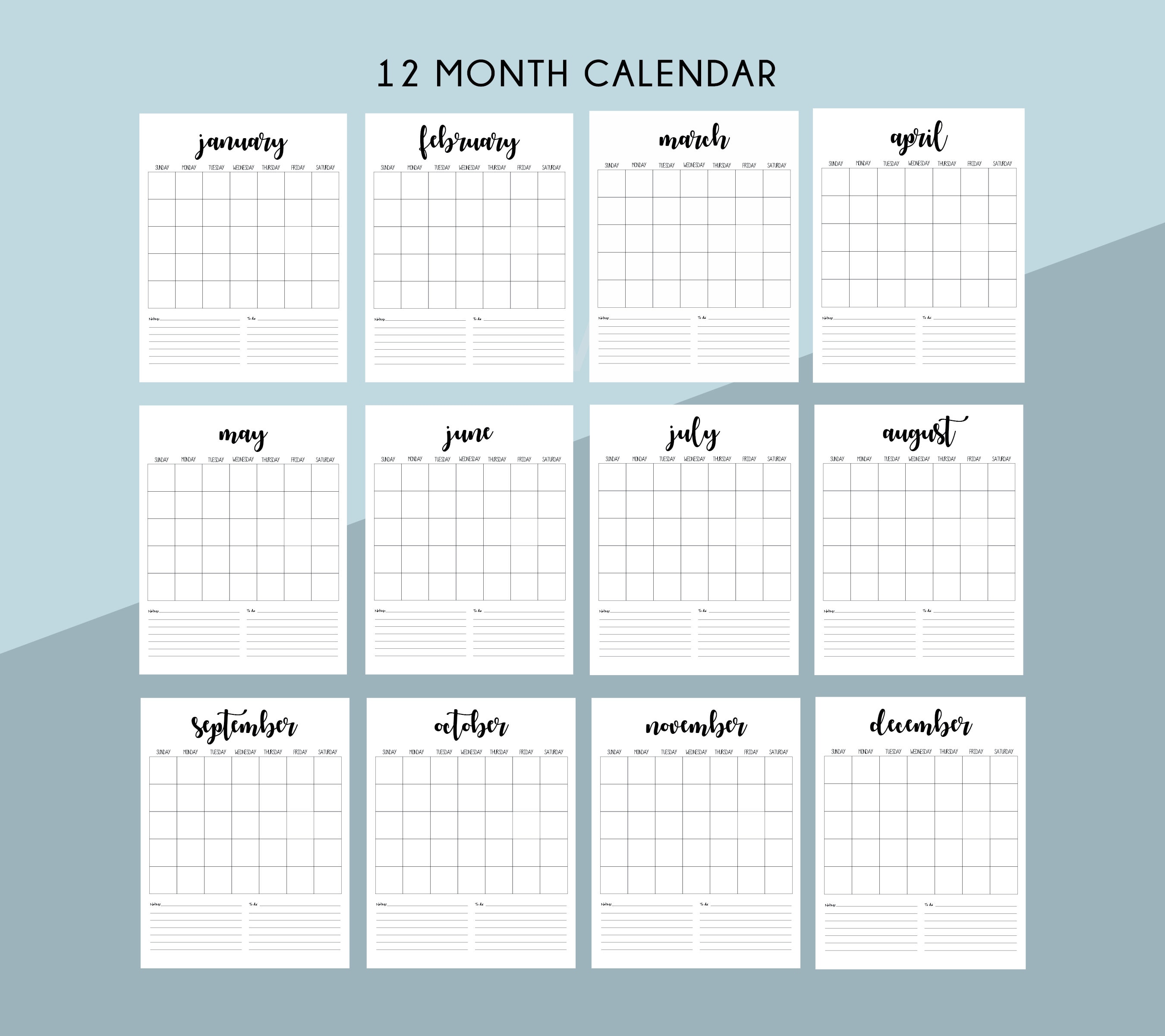 Monthly Calendar Blank Printable Download Pdf Print From Home Etsy