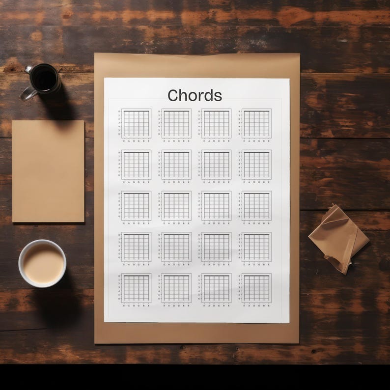 Guitar Chord Chart for Music Teacher Printable Blank Tablature for