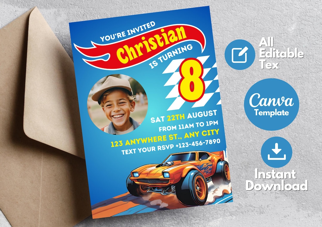 Editable Race Car Invitation Template Printable Toy Car Birthday
