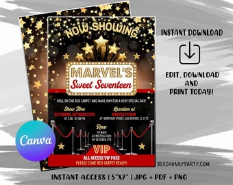 Hollywood Birthday Invitation VIP Pass Birthday Red Carpet Invitation