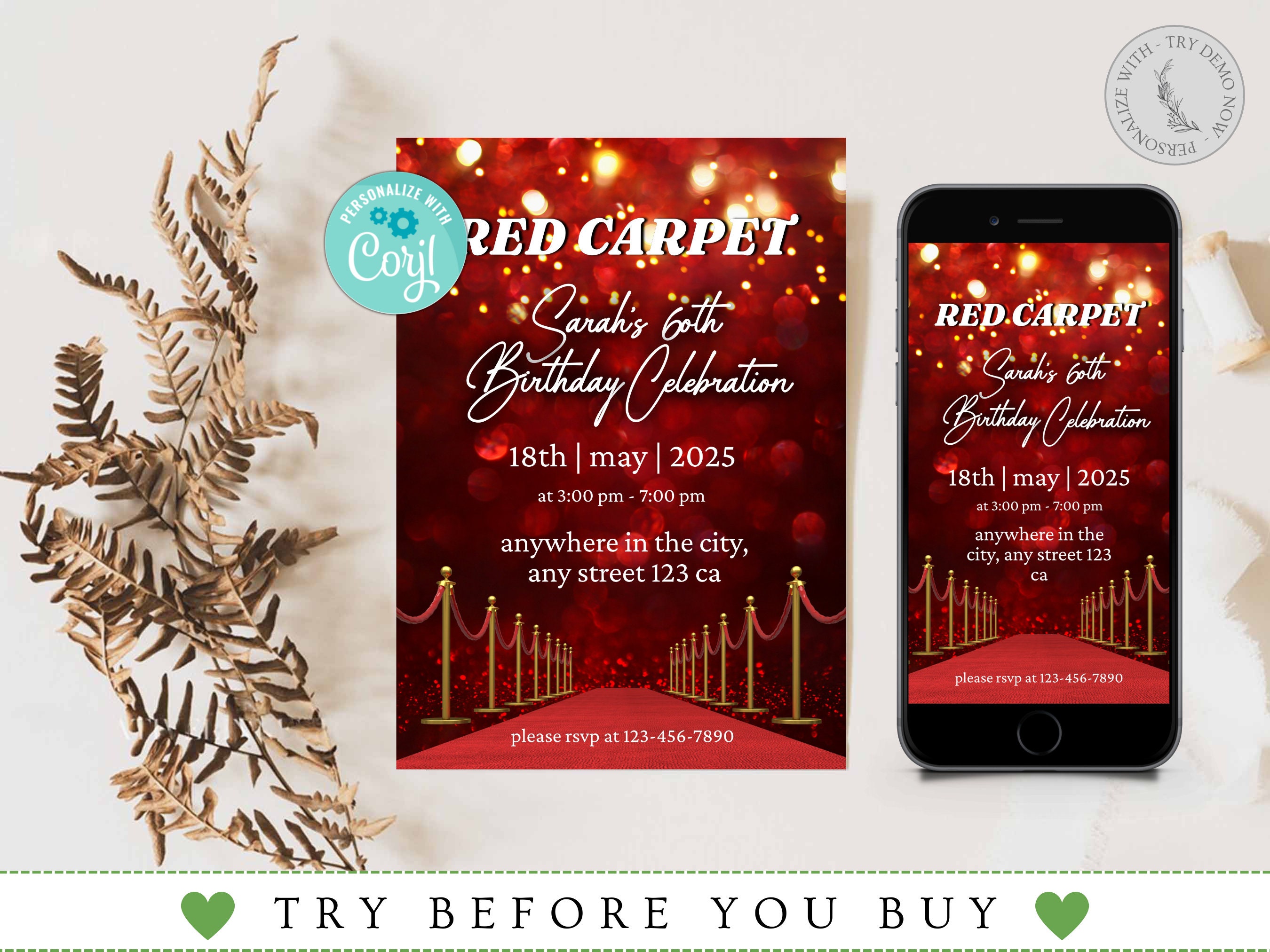 Red Carpet Birthday Invitation Red Carpet Event Invitation Red Carpet