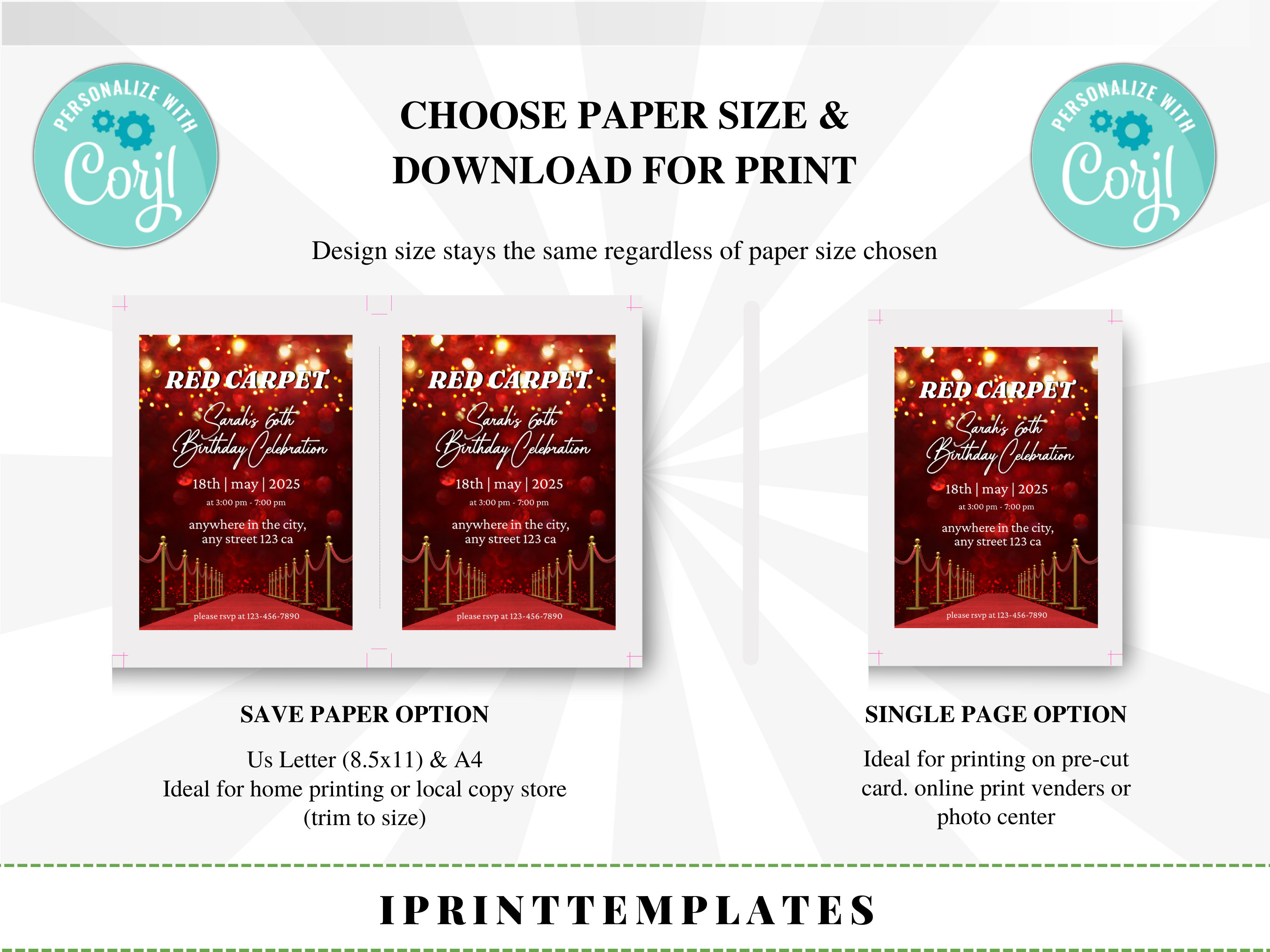 Red Carpet Invitation Template Printable Calendars AT A GLANCE