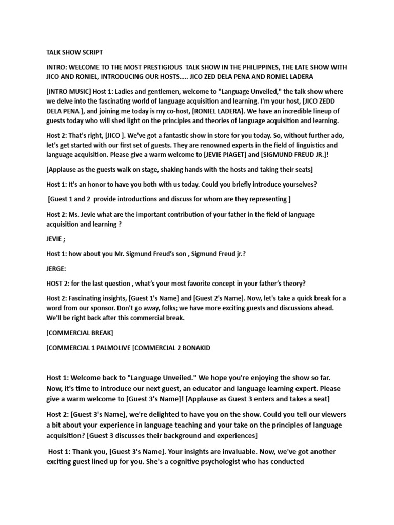 Talk Show Script PDF