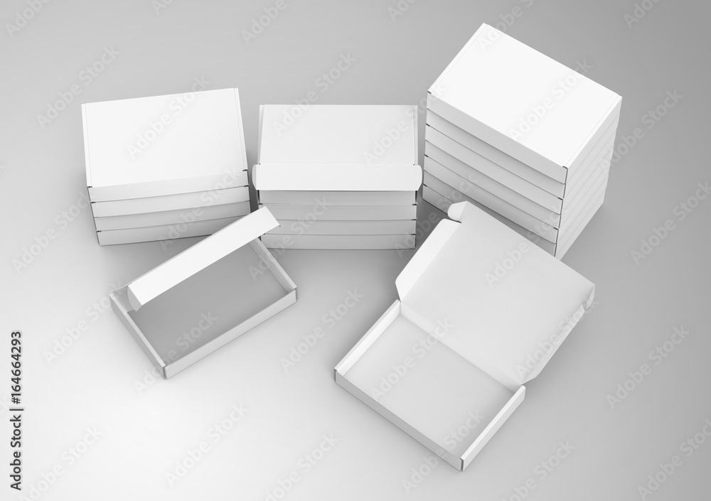 Blank tuck in flap packaging box mockup 3d illustration isolated on