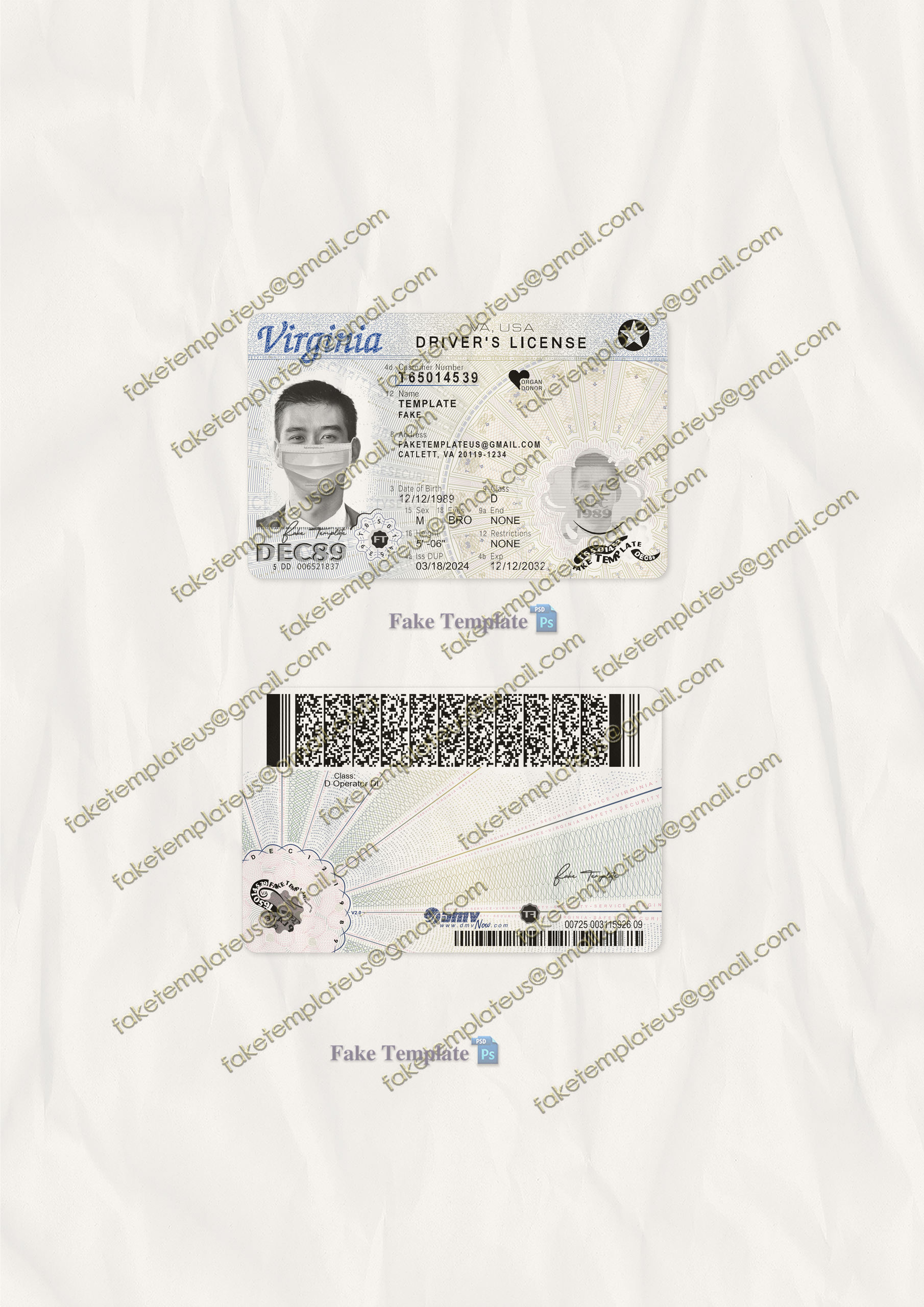 Virginia Drivers License Template (New Edition) PSD Photoshop File