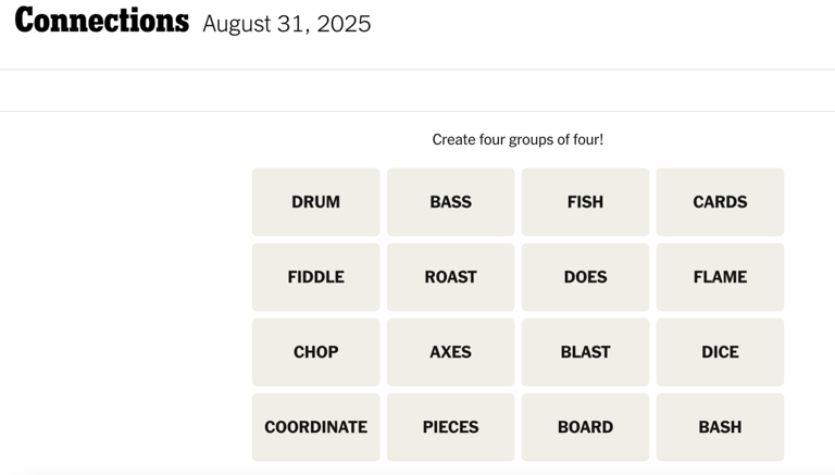 NYT Connections Answers for August 31 2025 Try Hard Guides
