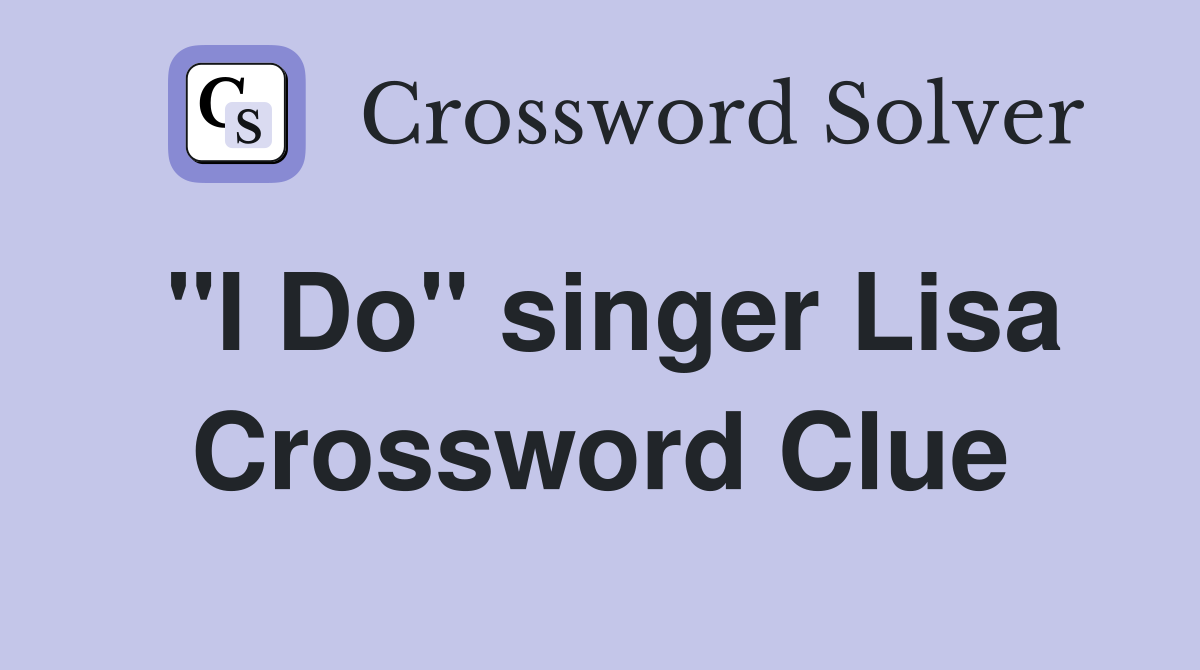 quot I Do quot singer Lisa Crossword Clue Answers Crossword Solver