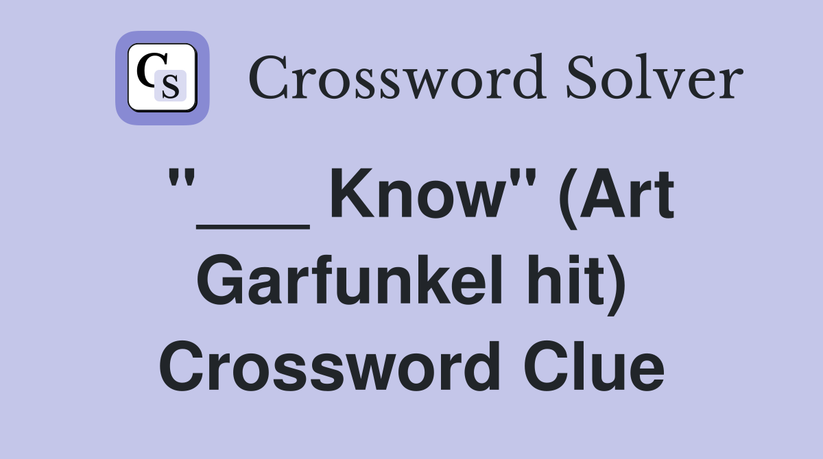 Know quot (Art Garfunkel hit) Crossword Clue Answers Crossword Solver