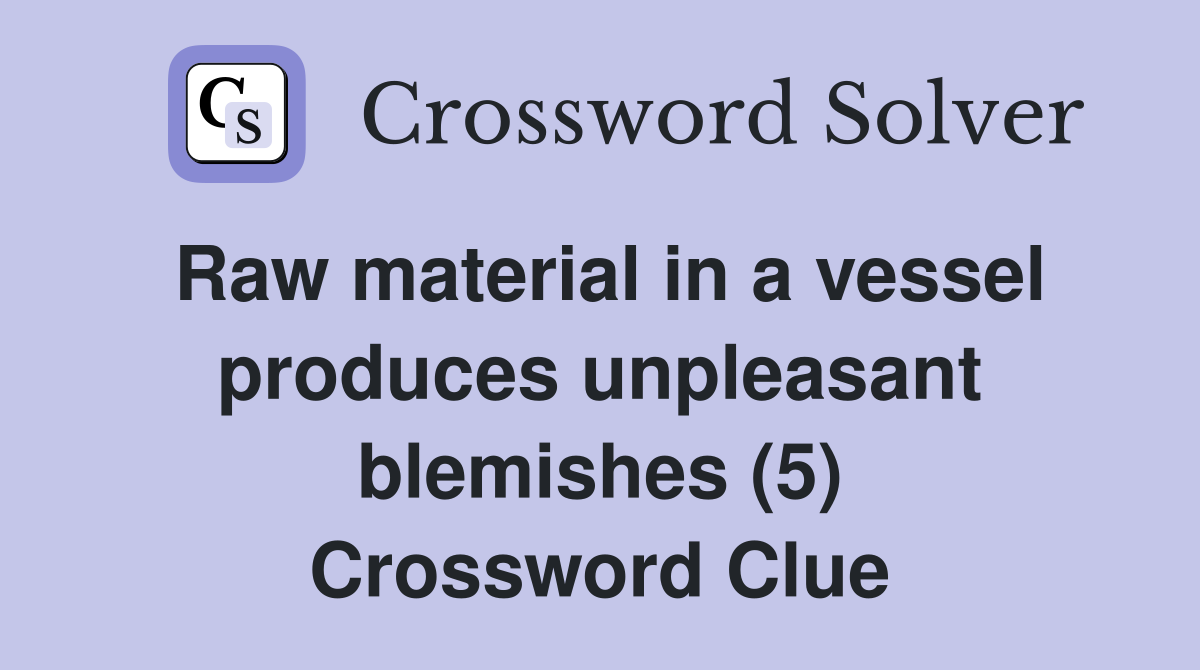 Raw material in a vessel produces unpleasant blemishes (5) Crossword
