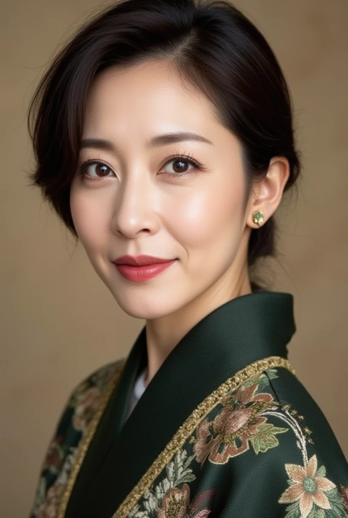 A close up portrait of a stunning 50 year old Japanese woman with a