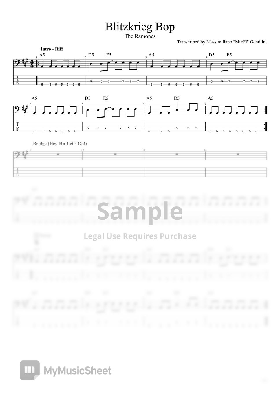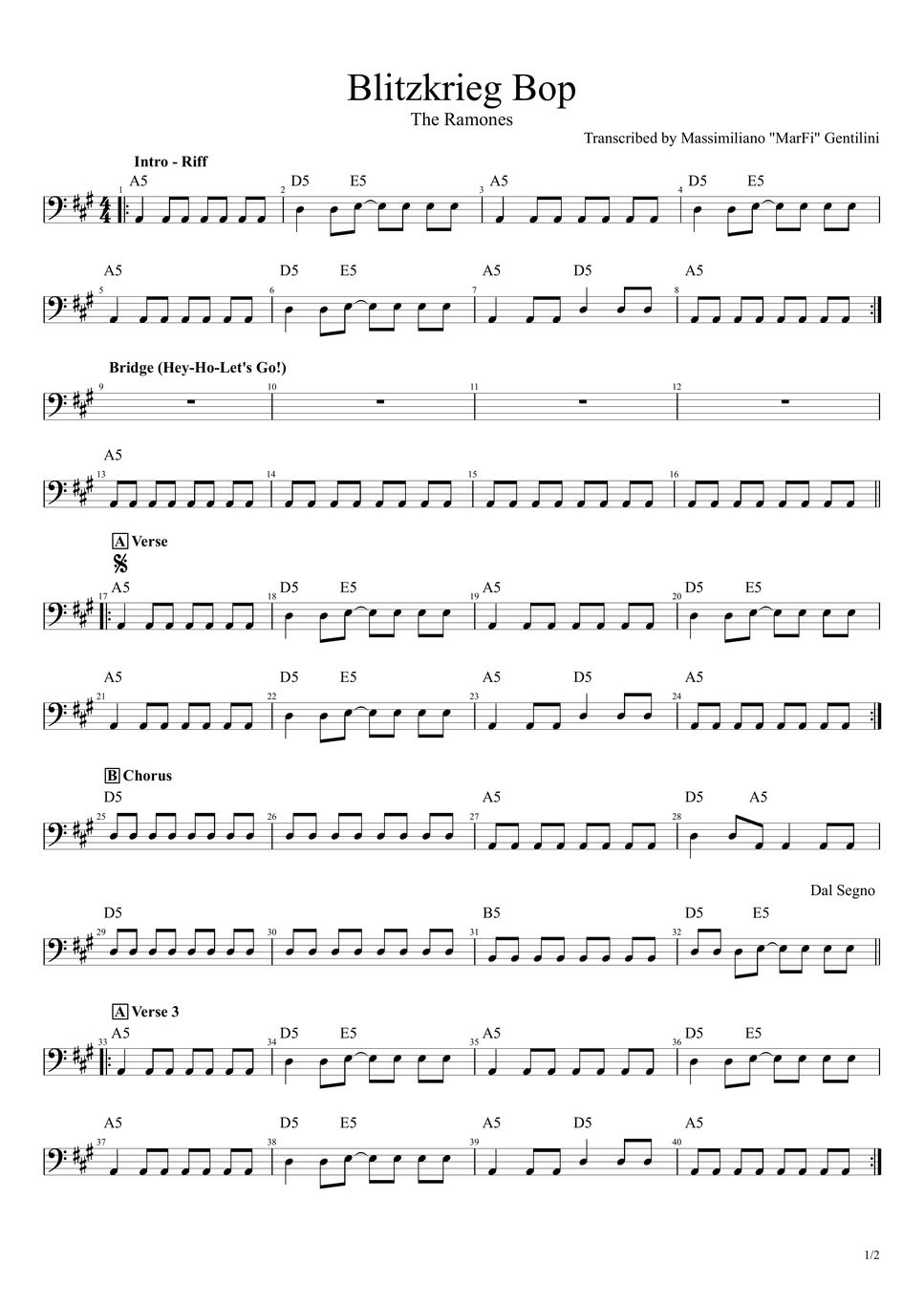 The Ramones Blitzkrieg bop TAB by Massimiliano Gentilini