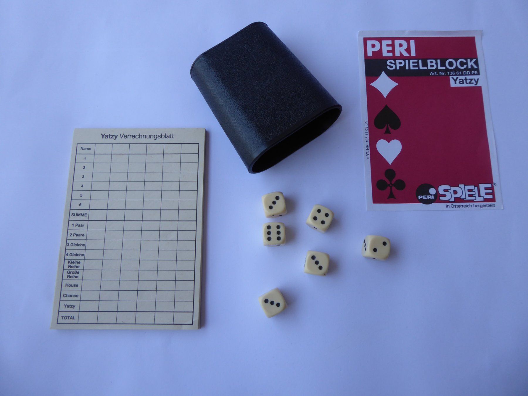 Yatzy 6 Würfel und 1 Kunststoff Würfelbecher Block (Gebraucht) in