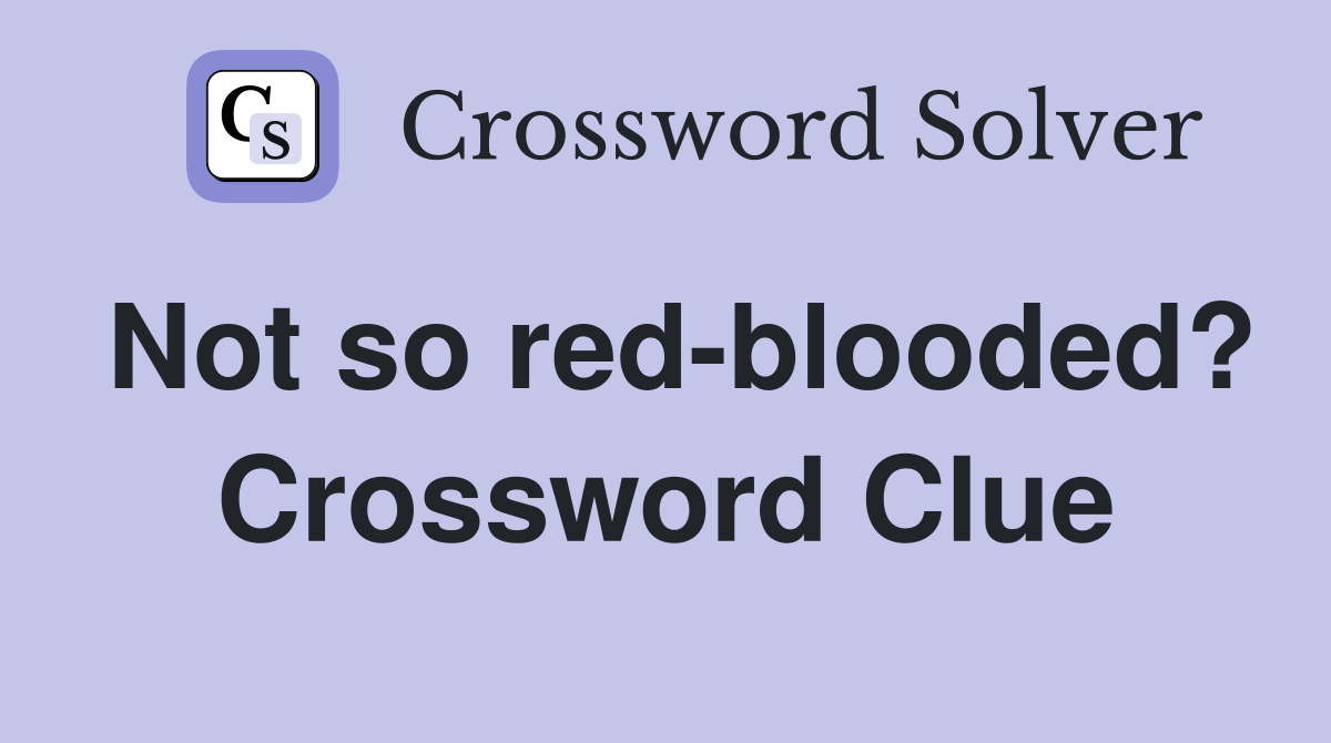Not so red blooded? Crossword Clue Answers Crossword Solver
