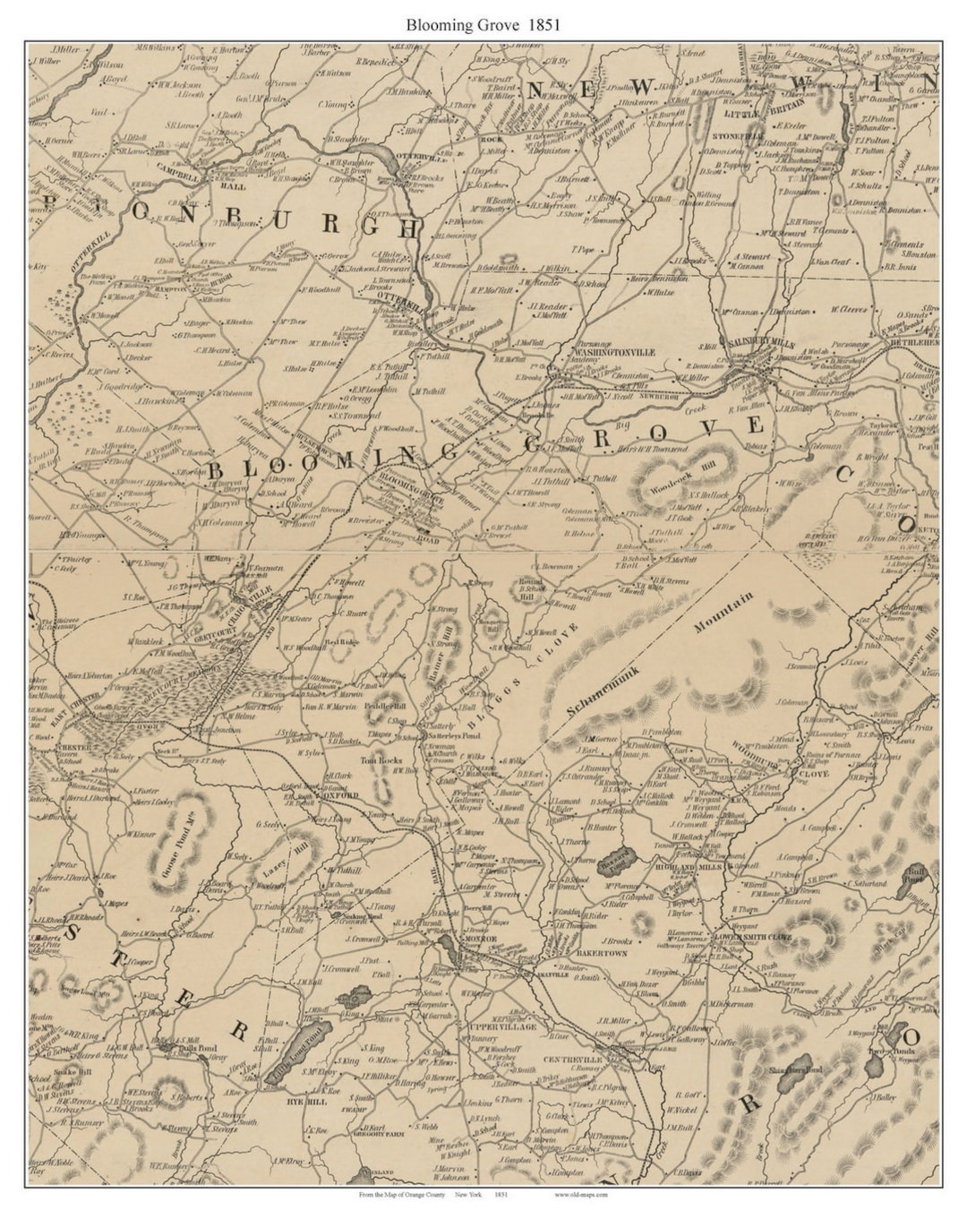 Blooming Grove 1851 Old Town Map With Homeowner Names Reprint