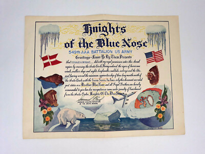 Blue Nose Certificate 1952 EPHEMERA PHOTOGRAPHS MILITARY ARTWORK