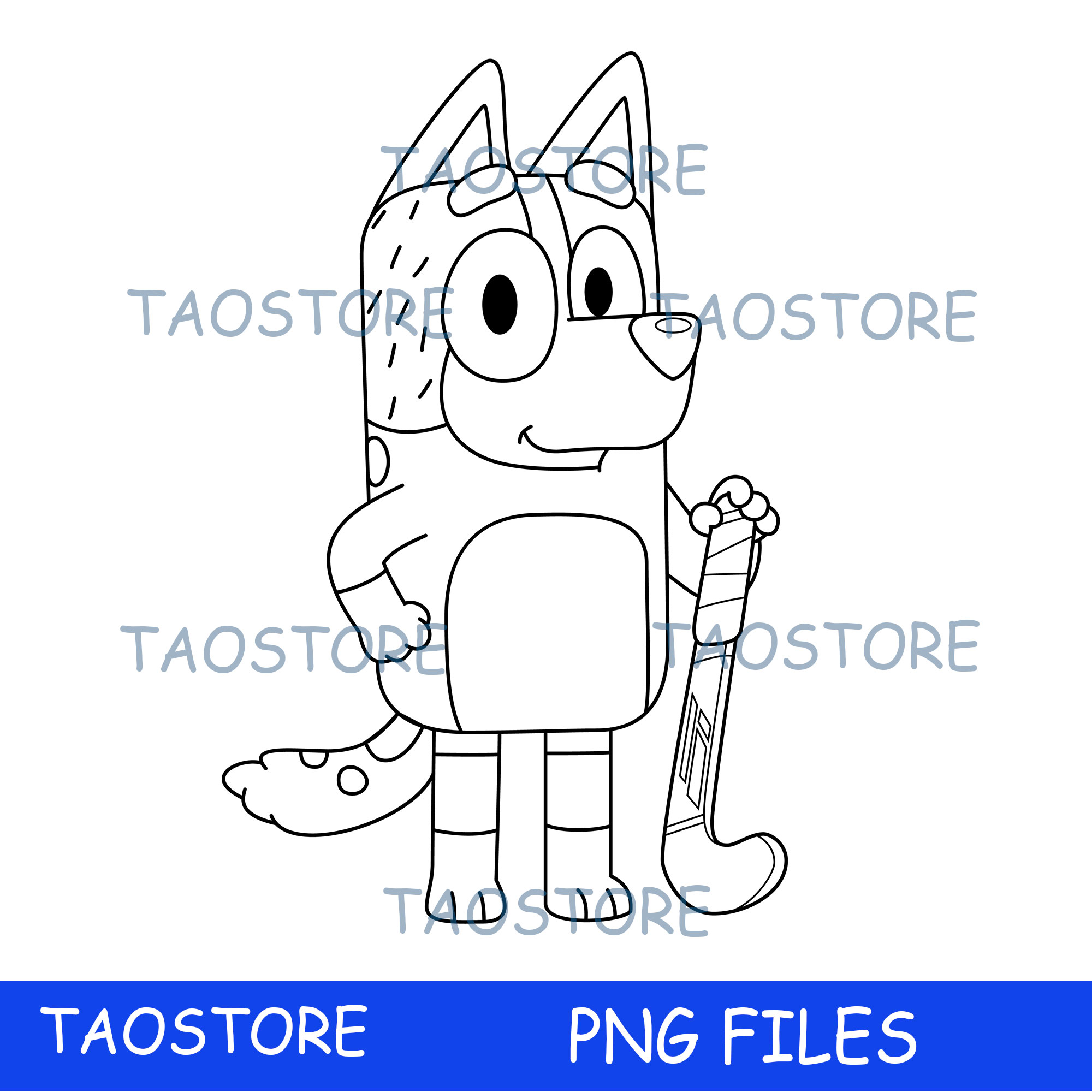 Bluey Character Outline Art for Kids SVG PNG Download High quality