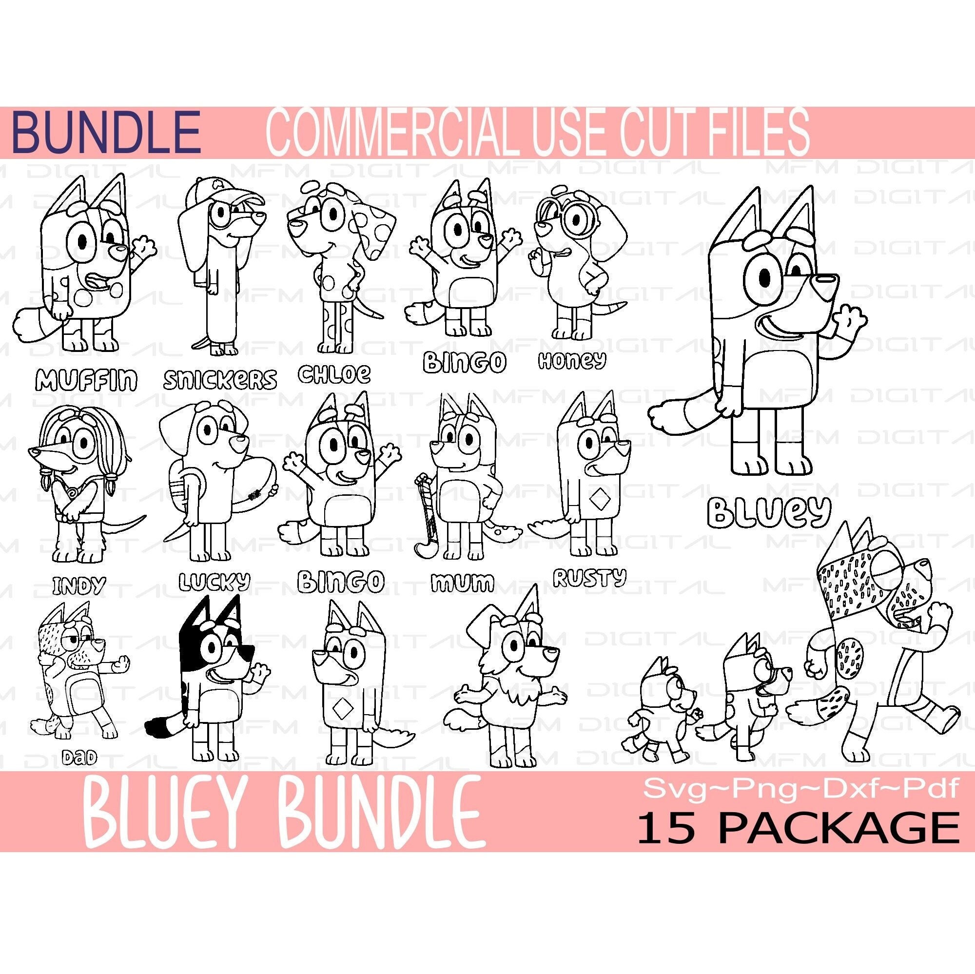 750 Bluey png Bluey svg Bluey bundle svg Bluey outline Bluey