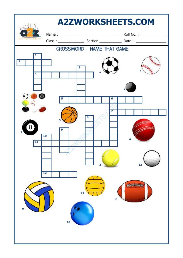 A2Zworksheets:Worksheet of Crossword Name That Game Reading English
