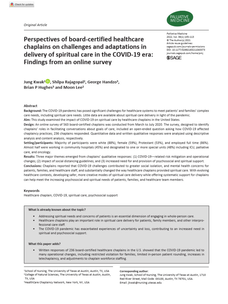 Kwak Et Al 2021 Perspectives of Board Certified Healthcare Chaplains On
