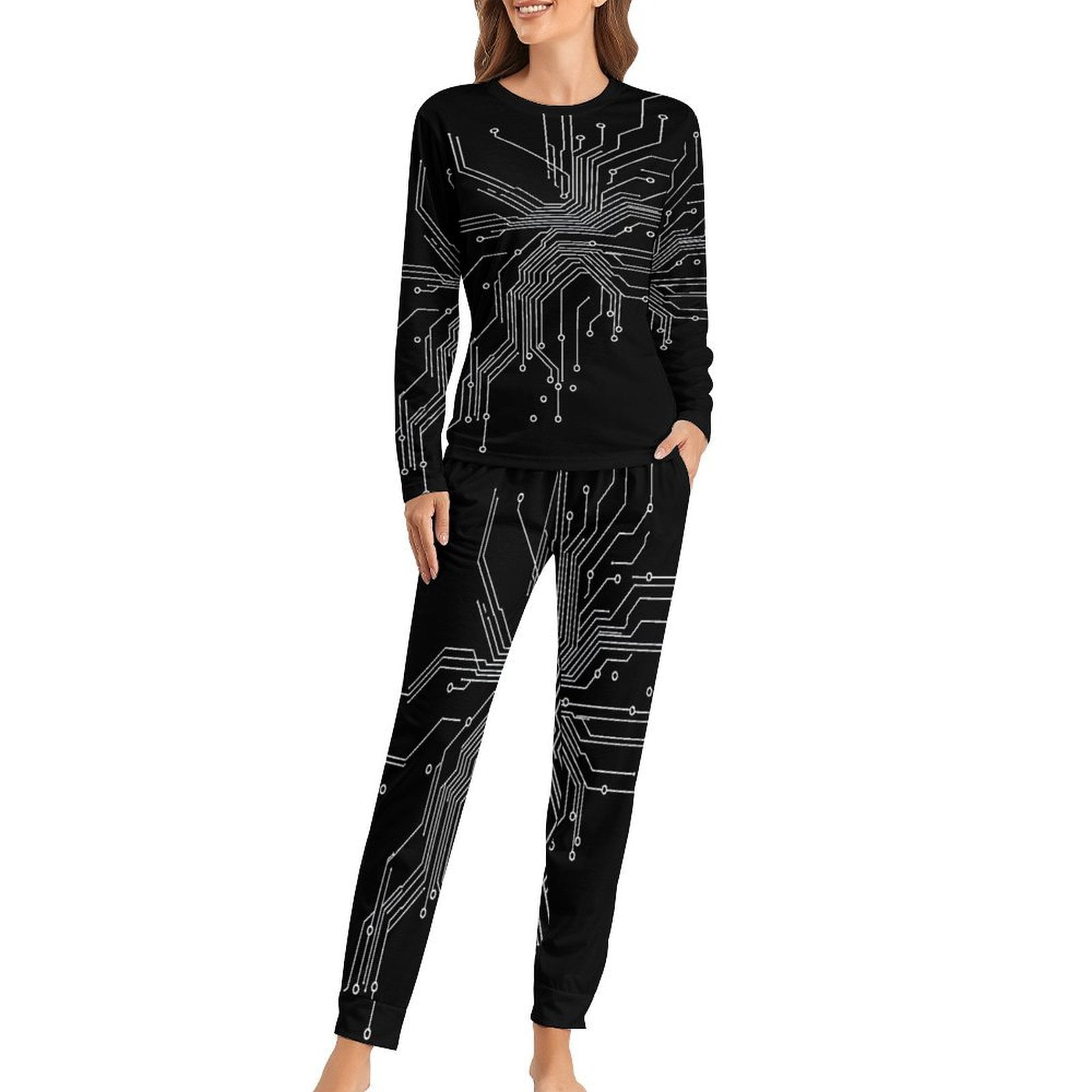 Circuit Board Pattern Design Pajamas 2 Pieces Pajama Sets Woman Long